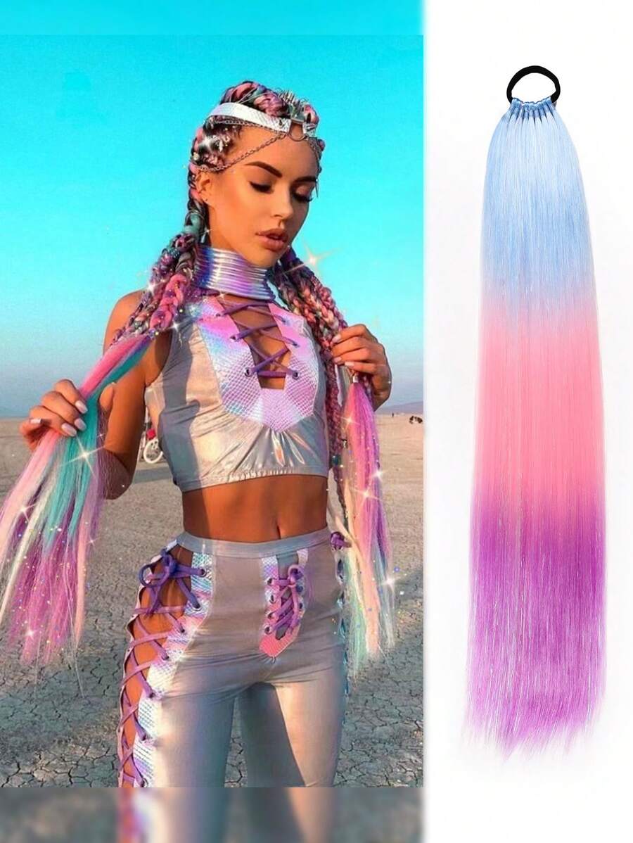 اكسيسوارات إضافية للشعر بشكل ذيل الحصان 26 بوصة برباطة شعر ، إضافات شعر ملونة للضفائر ذيل الحصان المتدرج بألوان للحفلات و المهرجانات والمناسبات الخاصة المجنونة 1 حبة (أزرق فاتح/وردي/بنفسجي) باروكة