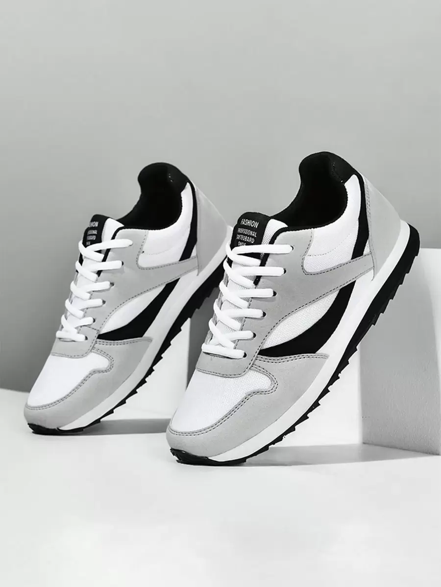أحذية كاجوال معلم للمراهقين/الشباب ، موديل كلاسيكي رجعي من الكعب الرياضية ، أحذية خفيفة الوزن مريحة ومانعة للانزلاق للجري والتمارين الرياضية ، بألوان أبيض/أسود مناسبة للطلاب
