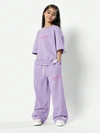 في نسيج محبوك توين البنات تي شيرت Co-ords