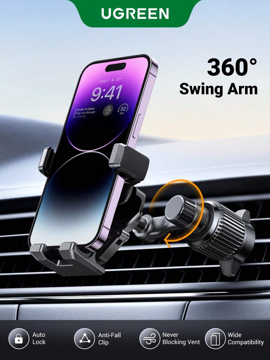 UGREEN حامل هاتف للسيارة UGREEN ثابت بفتحة التهوية ، مناسب للهواتف من 4.7 إلى 7.2 بوصة