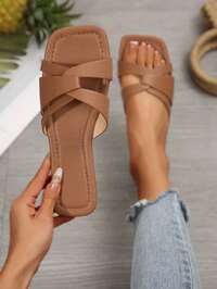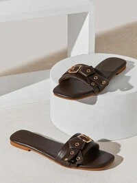 في الشوكولاته البني صنادل مسطحة للنساء