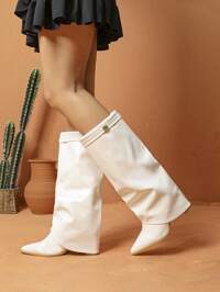 في بني أحذية عالية الركبة للنساء