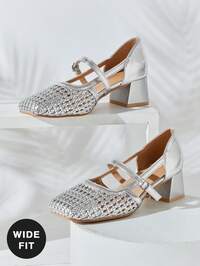 في فضي معدني حذاء نسائي واسع صالح
