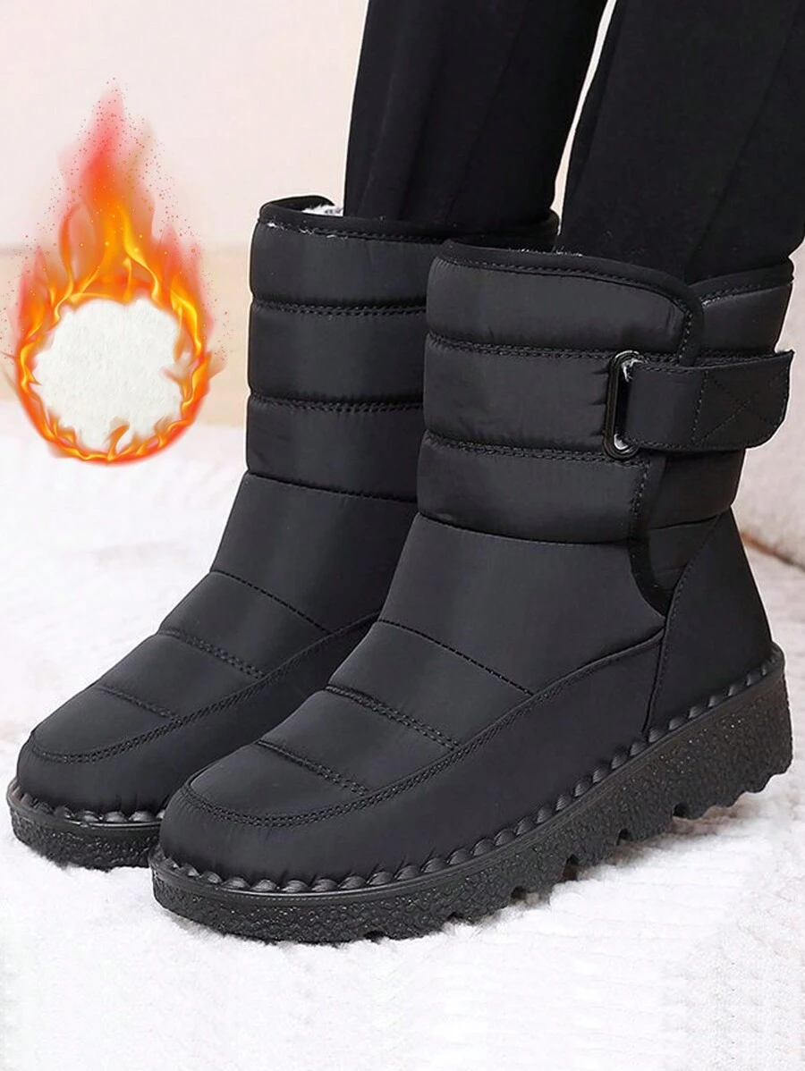 بوت ثلج للنساء للخارج، بوت متوسطة الطول دافئة، برقبة مستديرة وكعب مسطح، بطانة حرارية سميكة، مناسبة للشتاء، تناسب المقاسات من 36 إلى 45