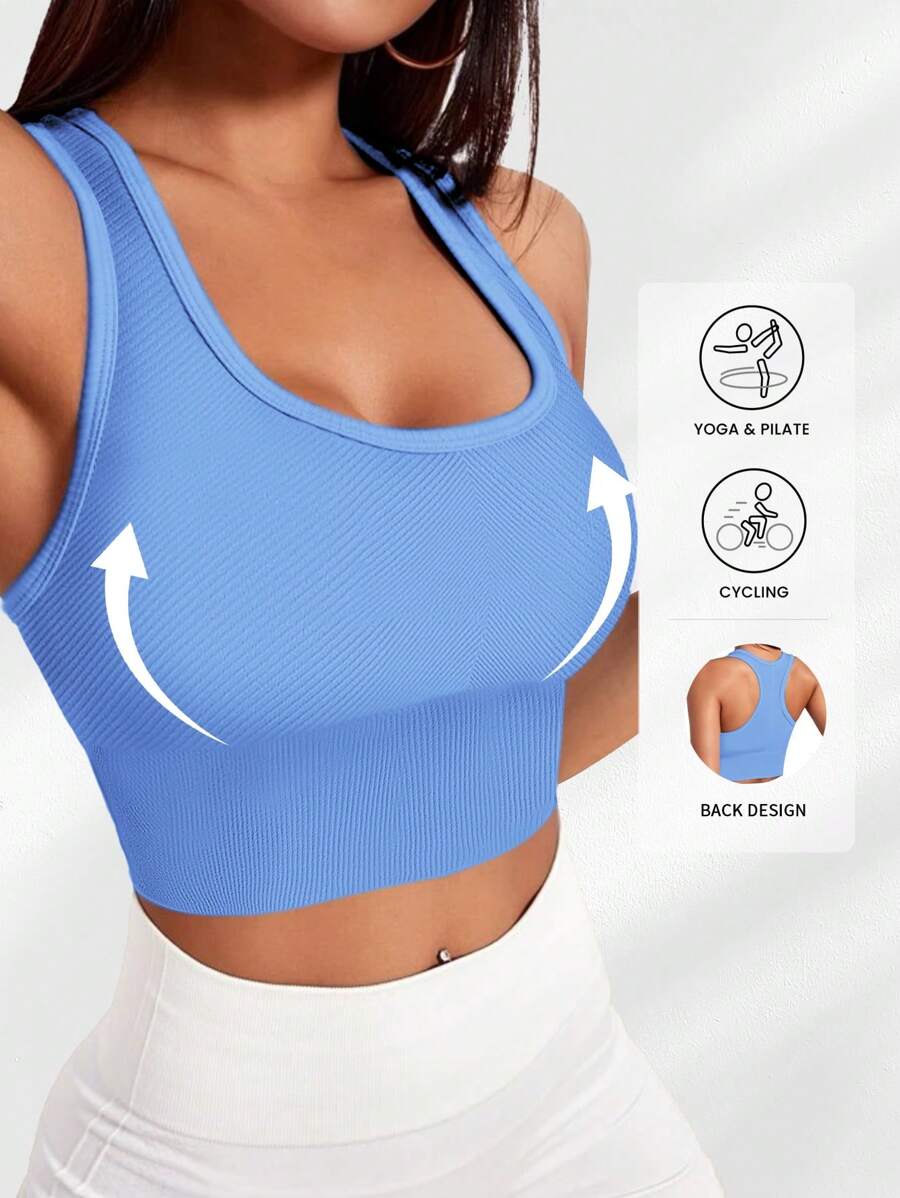 Yefecy حمالة صدر رياضية مبطنة بنسيج مرن أساسي أحادي اللون، حمالة صدر رياضية مقاومة للصدمات بتجميع بدون حلقات معدنية للنساء، ملابس رياضية للنساء