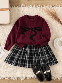 في عقدة القوس ملابس تريكو للفتيات الصغيرات