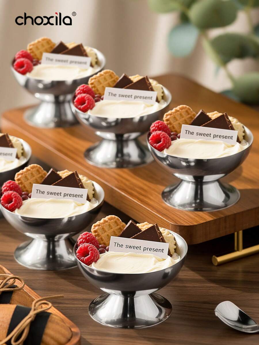 choxila 1/2/4/6 وعاء من الفولاذ المقاوم للصدأ لتقديم الآيس كريم، أكواب سلطة قابلة لإعادة الاستخدام، أكواب حلوى معدنية لتقديم السلطات والحلويات والوجبات الخفيفة والفواكه والحلوى، مناسبة لتحضير الآيس كريم والبودنج والتجمعات العائلية والأعراس وشهر رمضان وعيد الأضحى